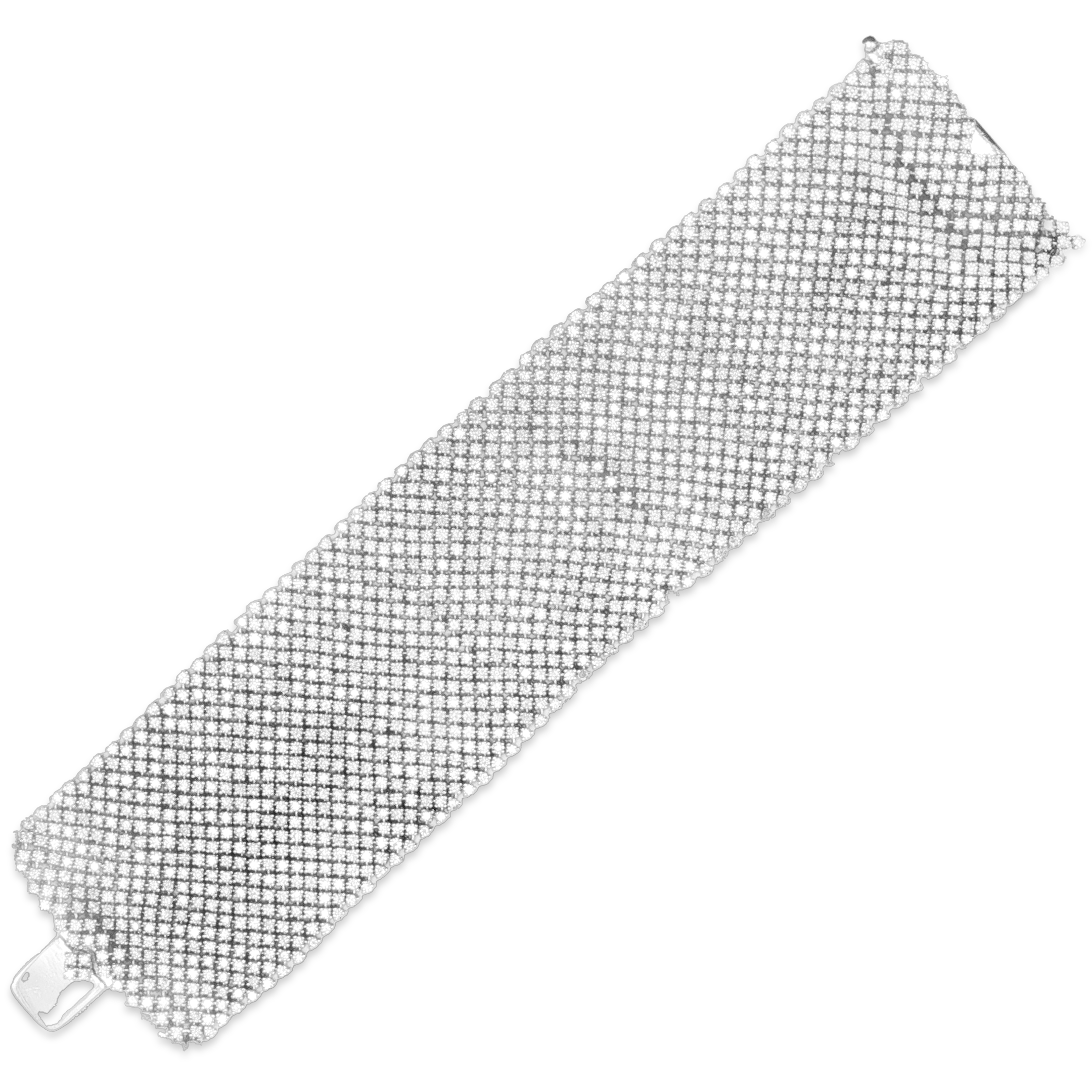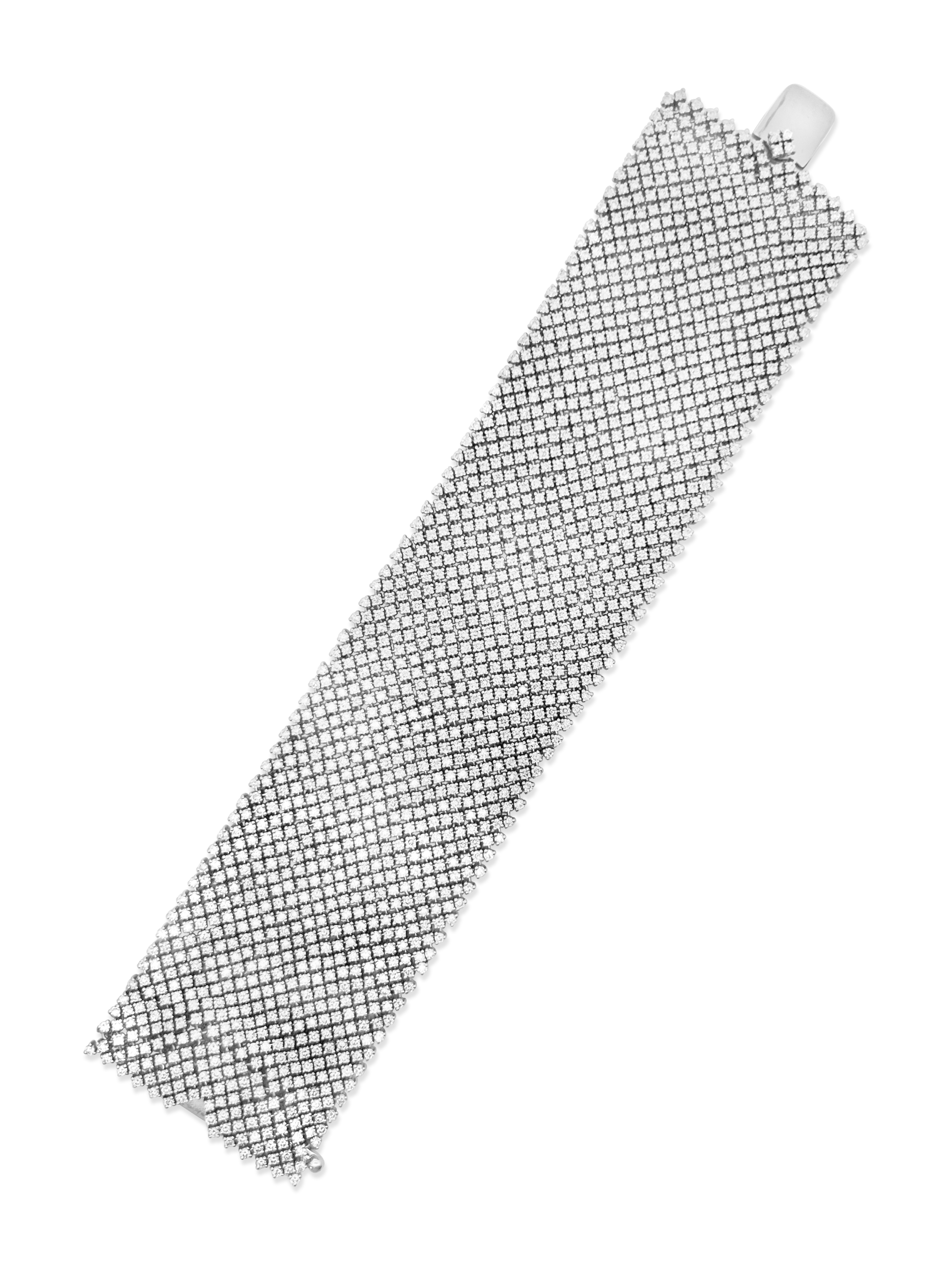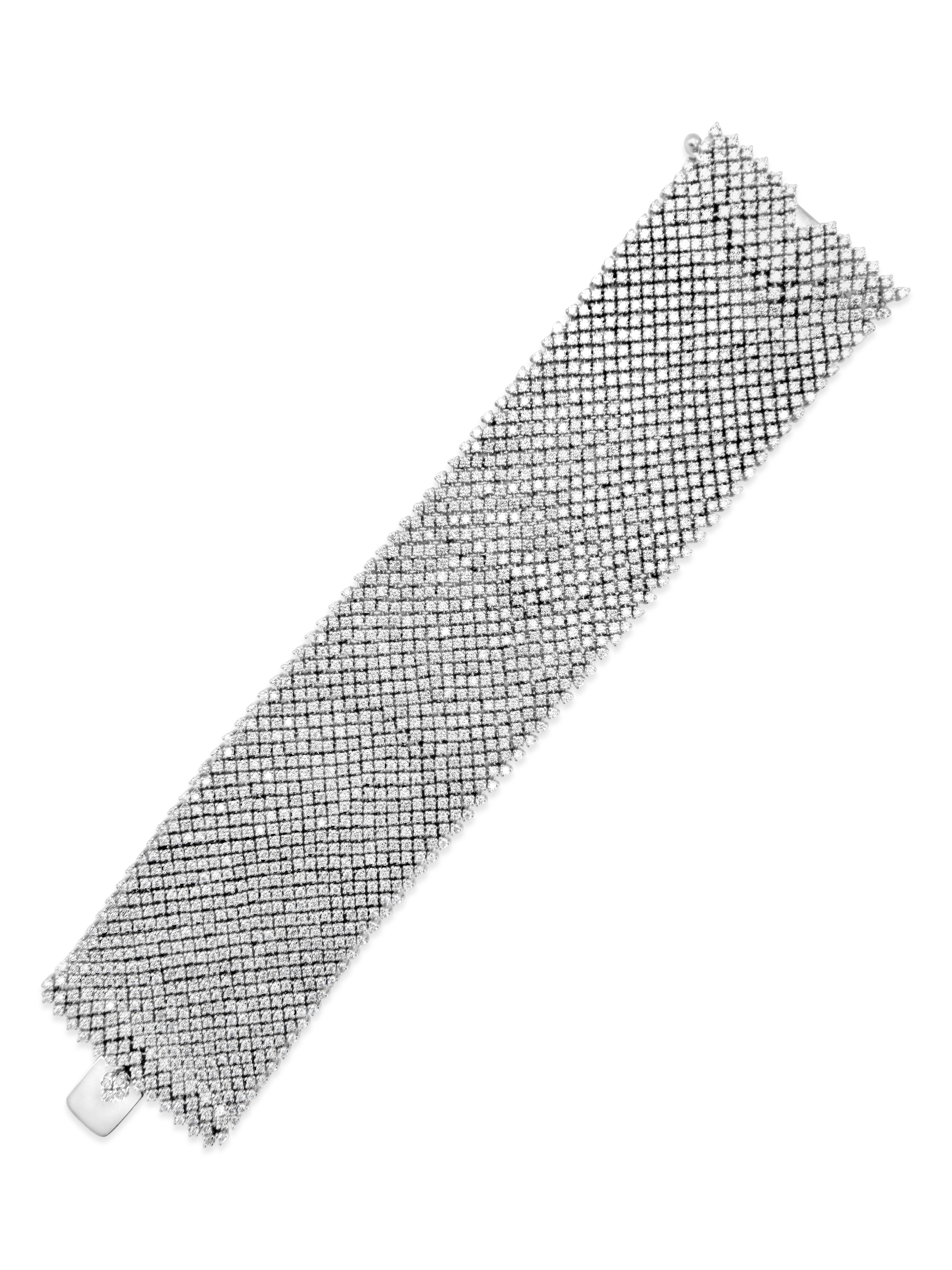 Round diamonds set in 18k white gold in this Salavetti mesh design bracelet. Total diamond weight is 26.63 carats.