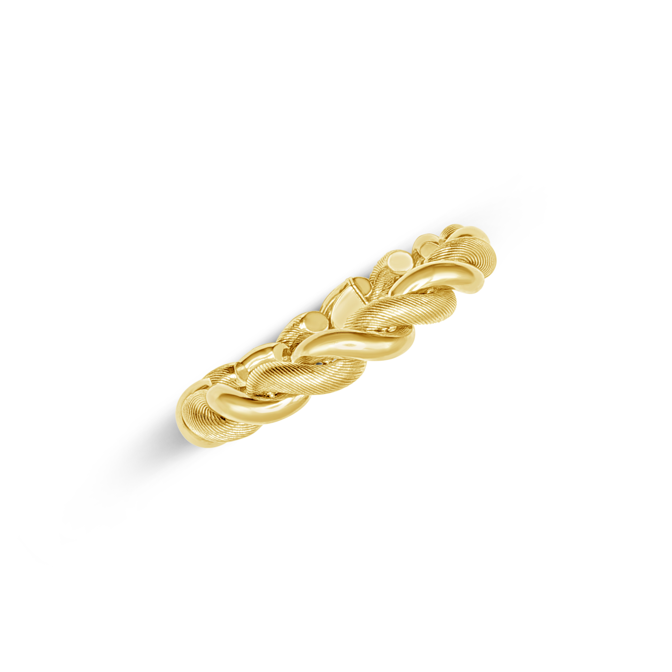 18k yellow gold Tiffany & Co. twist link bracelet. Alternating textured and polished links.