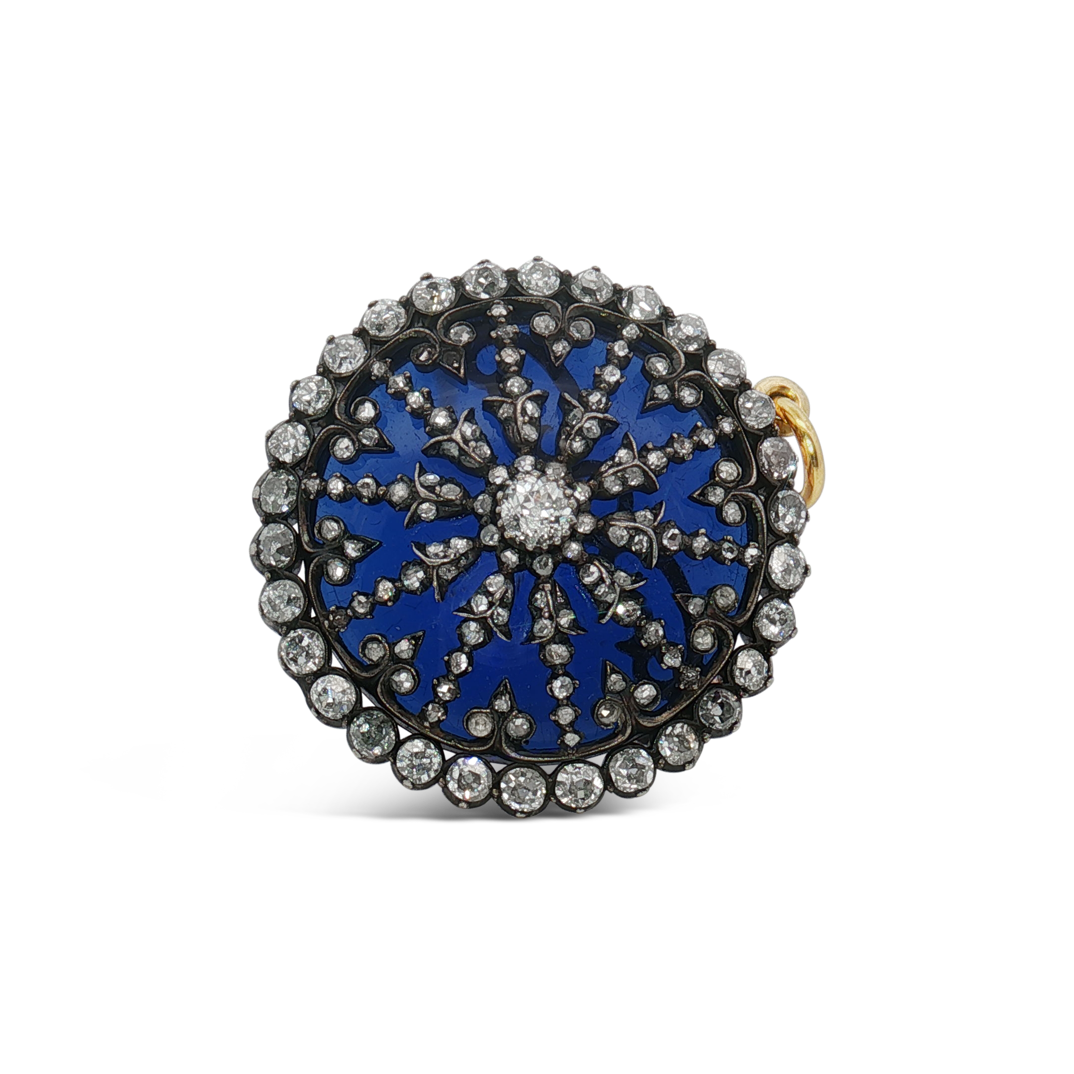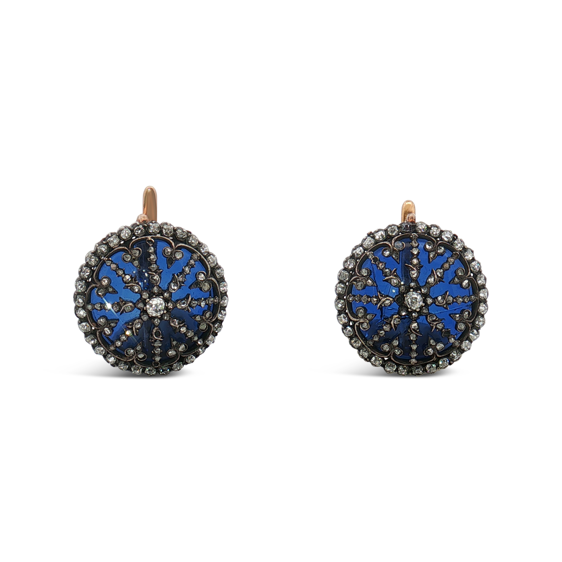Antique Diamond on Cobalt Blue Glass Earrings & Pin/Pendant Suite