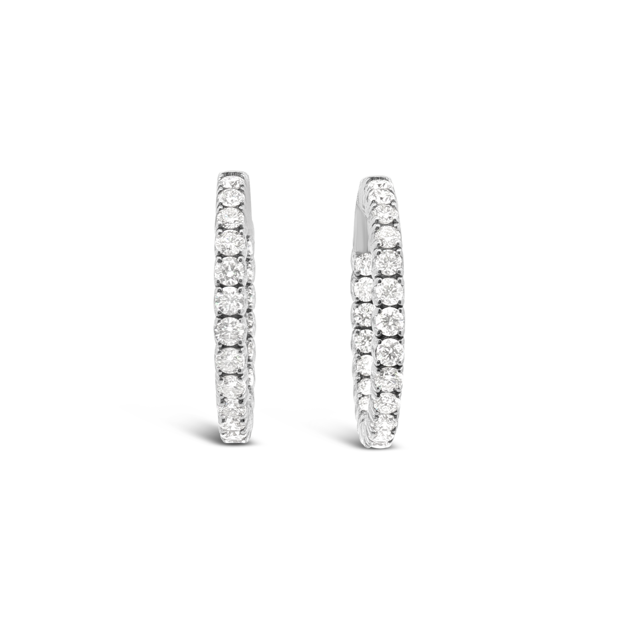 Round diamond inner/outer hoop earrings set in 14k white gold. Total diamond weight equals 2.75 carats.