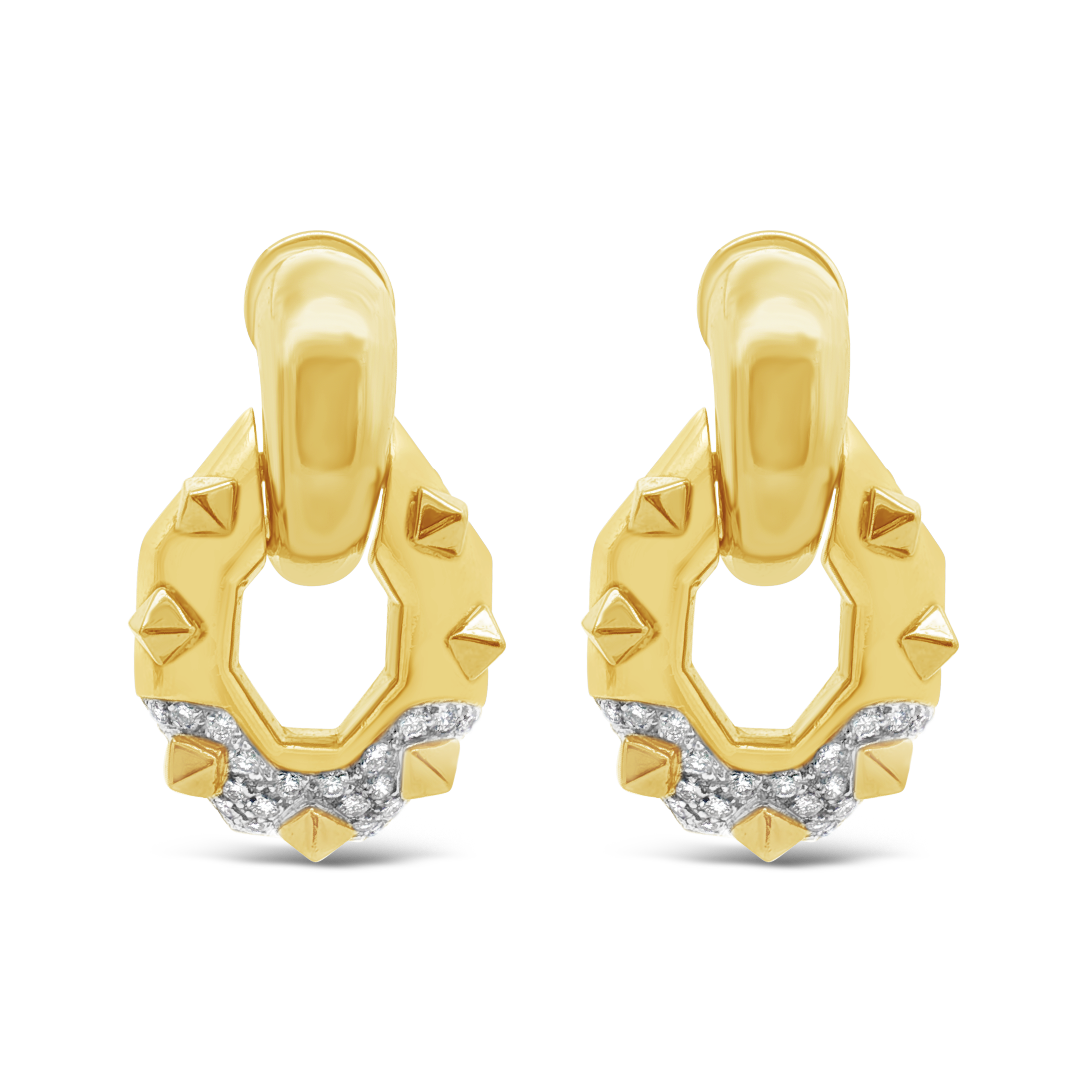 Gold & Diamond Door Knocker Estate Earrings