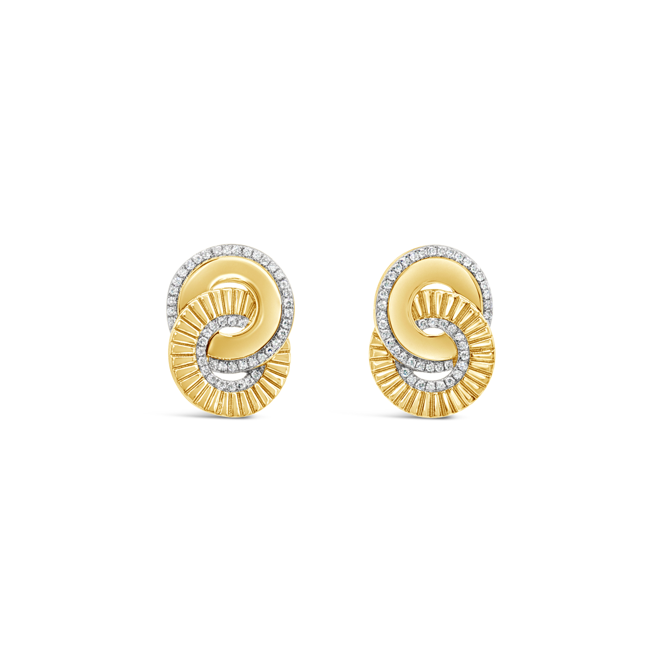 Round diamonds set in 14k yellow gold in these interlocking circle design earrings. Total diamond weight is .23 carat.