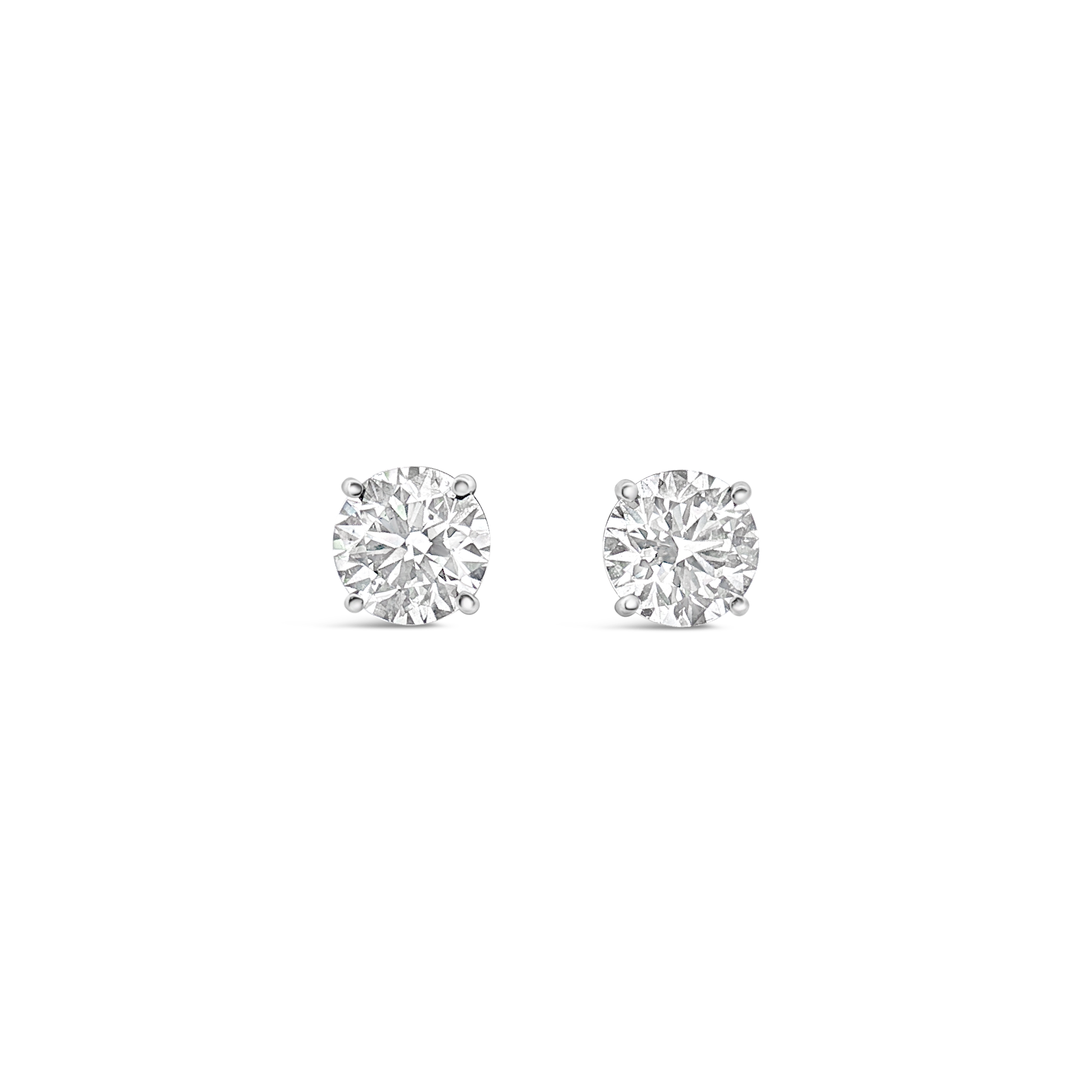 Round diamond stud earrings set in 14k white gold. Total diamond weight is 4.02 carats.