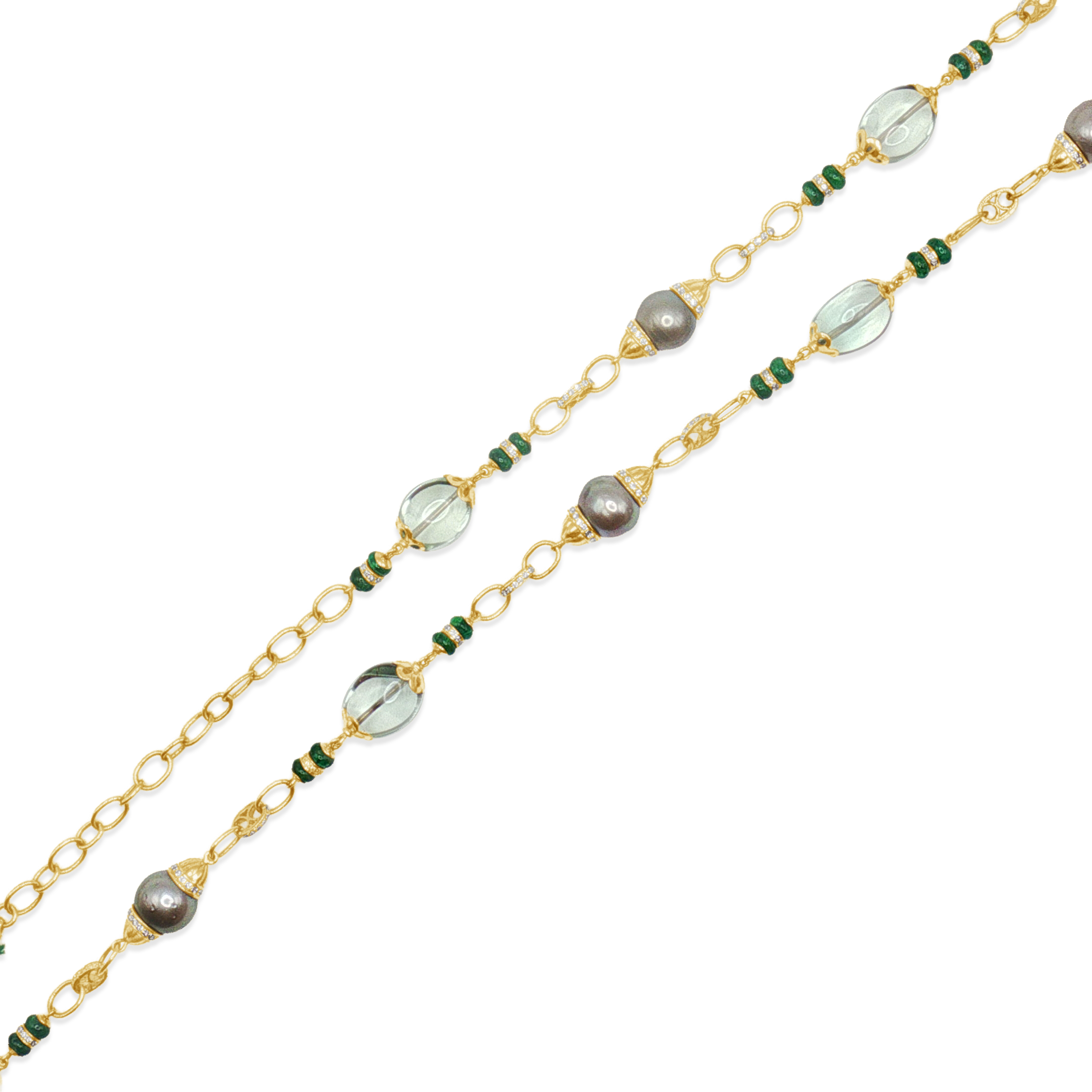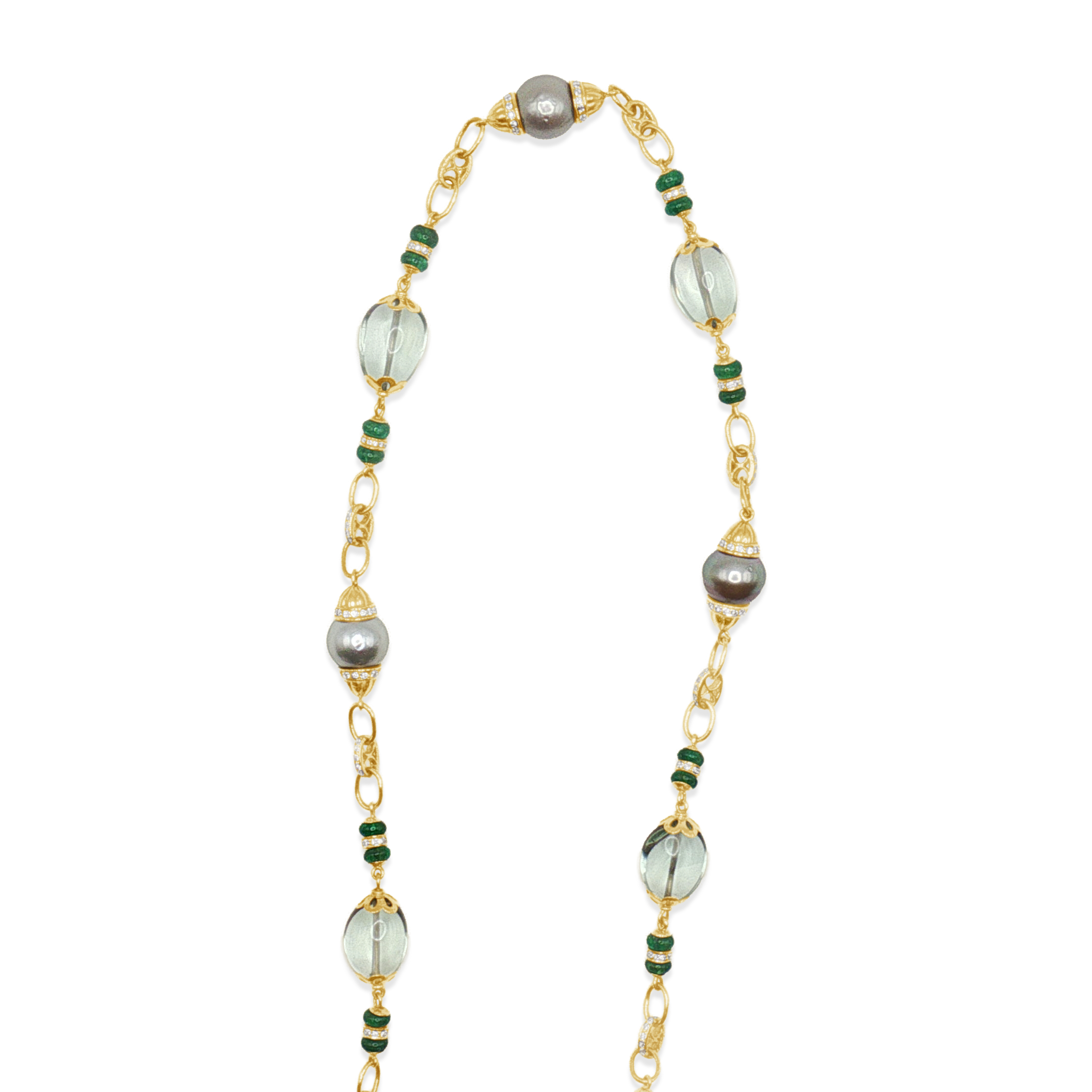 Emerald, Aquamarine, Tahitian Pearl & Diamond Estate Necklace