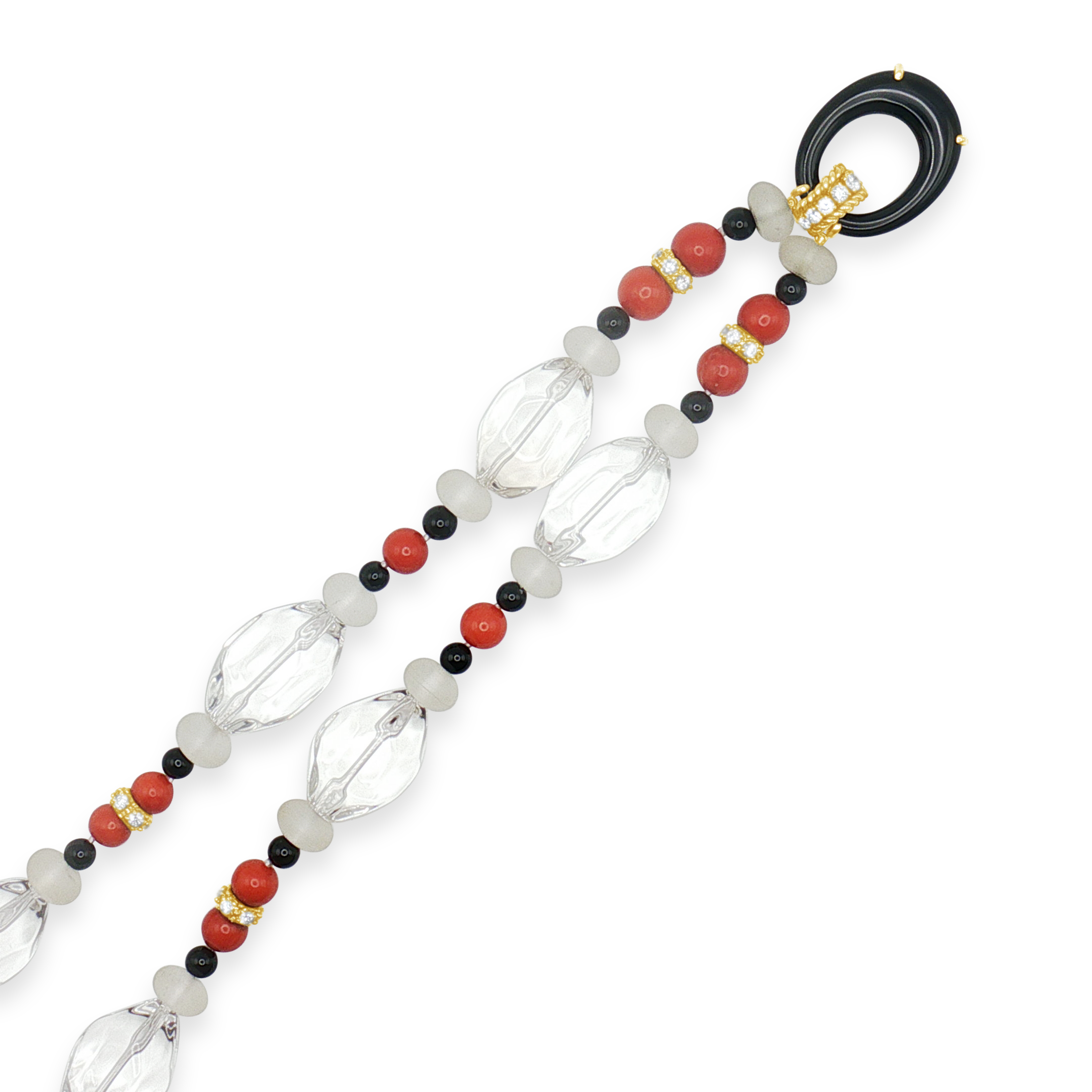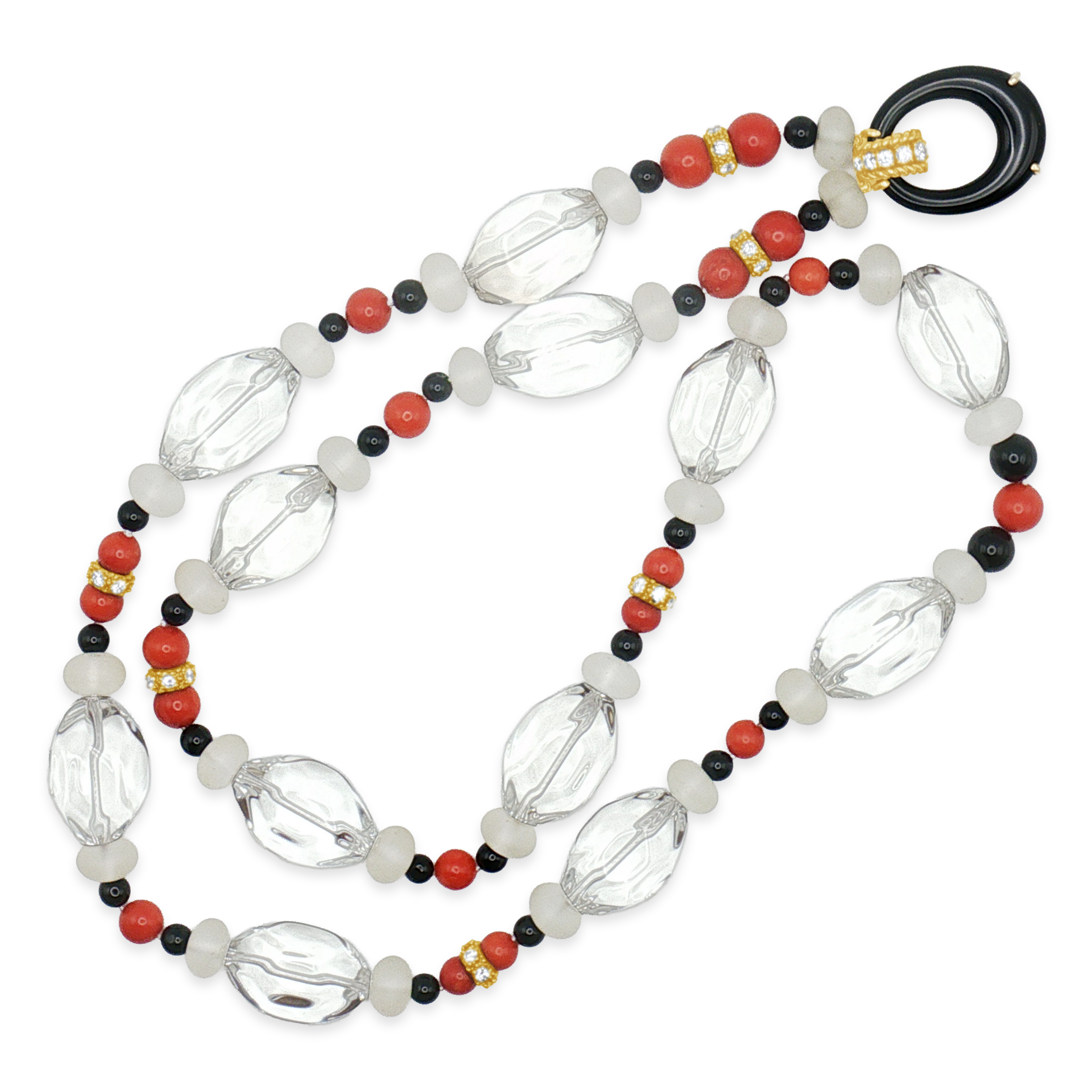 Crystal, onyx, coral and round diamond Seamann Schepp estate necklace with 18k yellow gold. Since this is from an estate, its availability is subject to prior sale.
