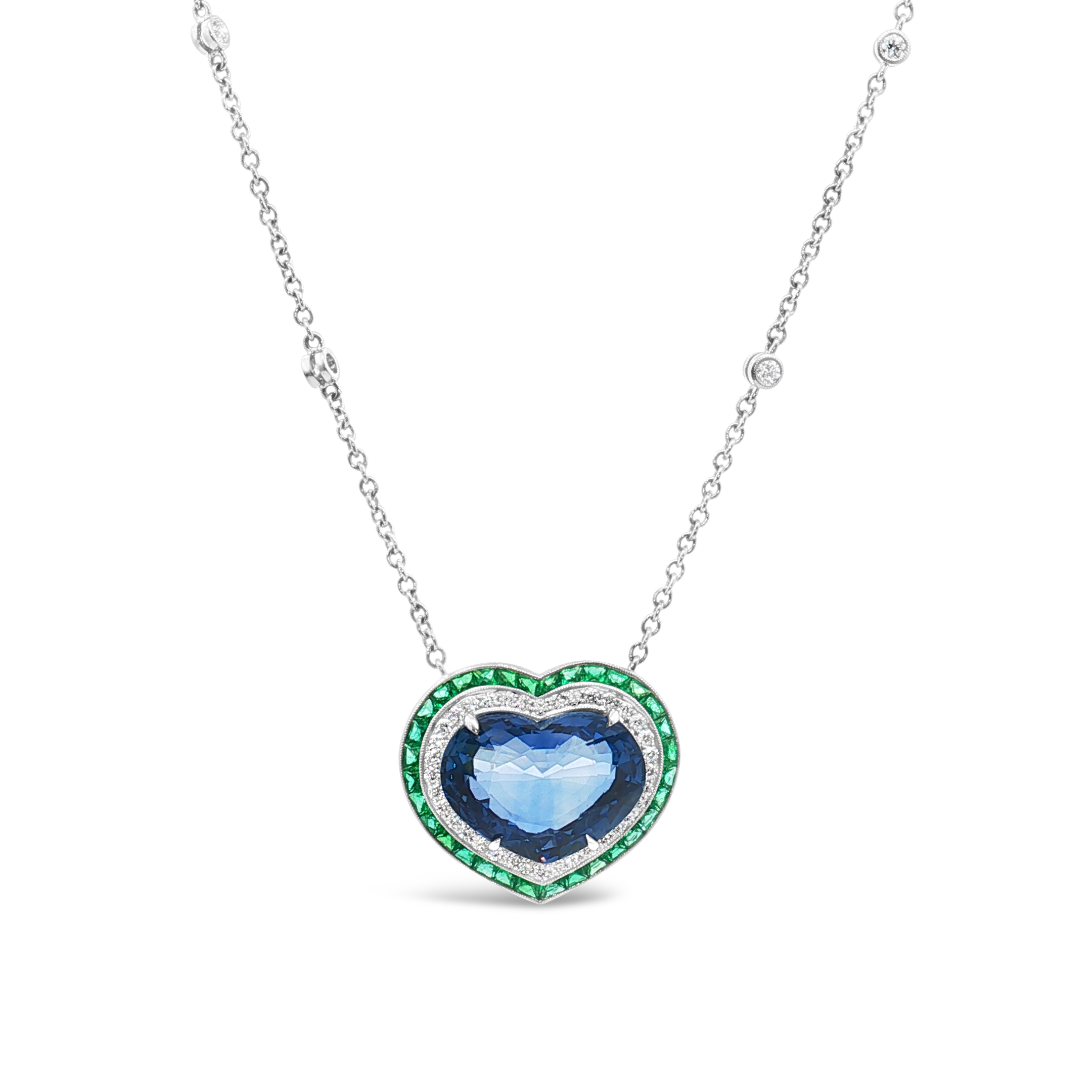 Heart Sapphire, Diamond & Emerald Pendant