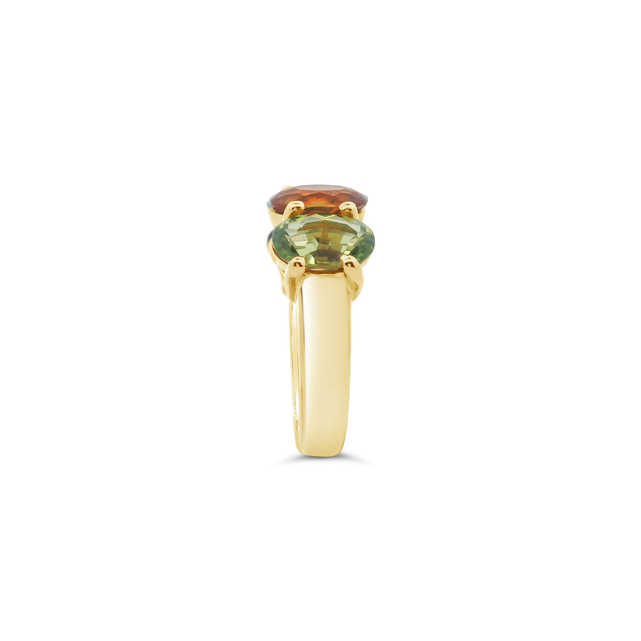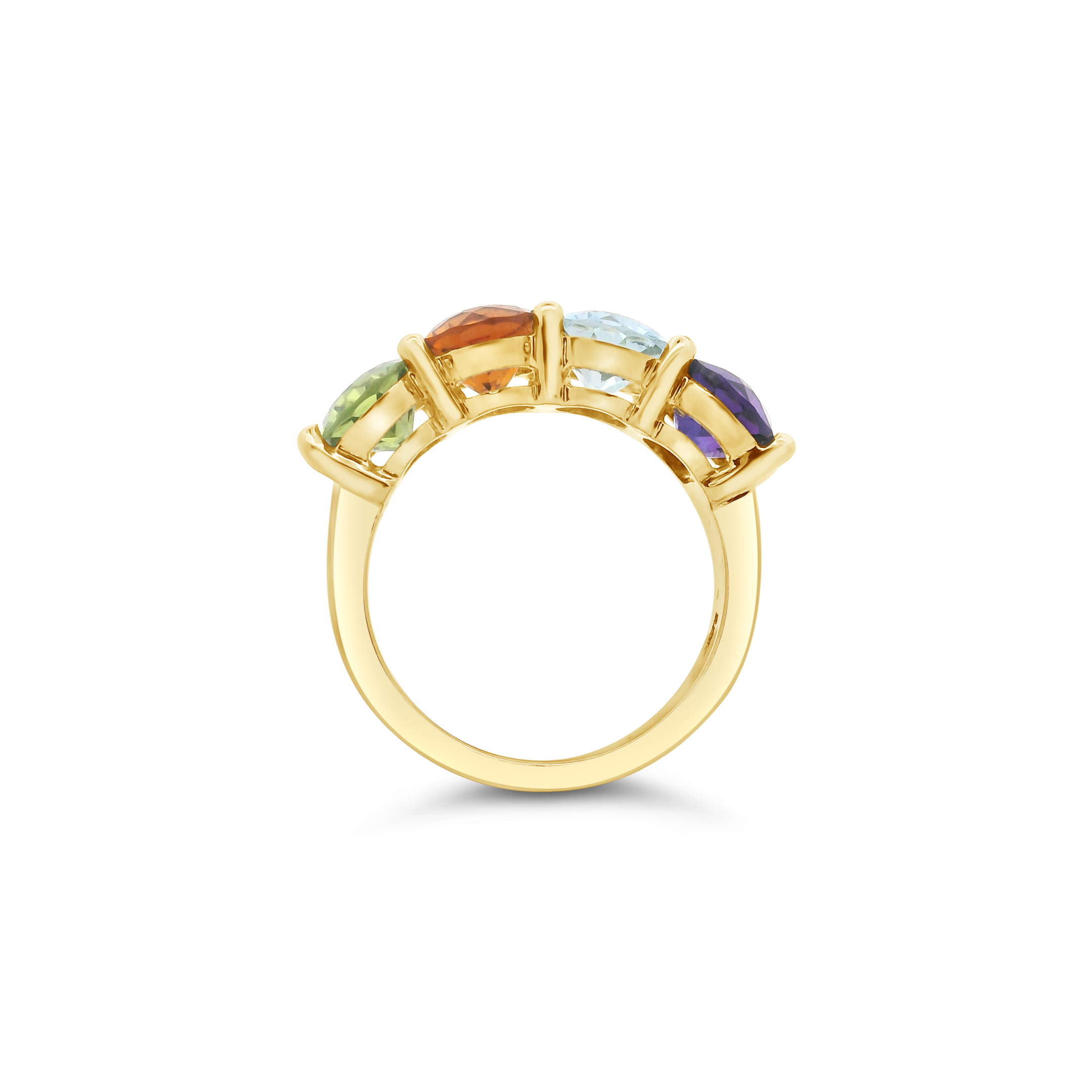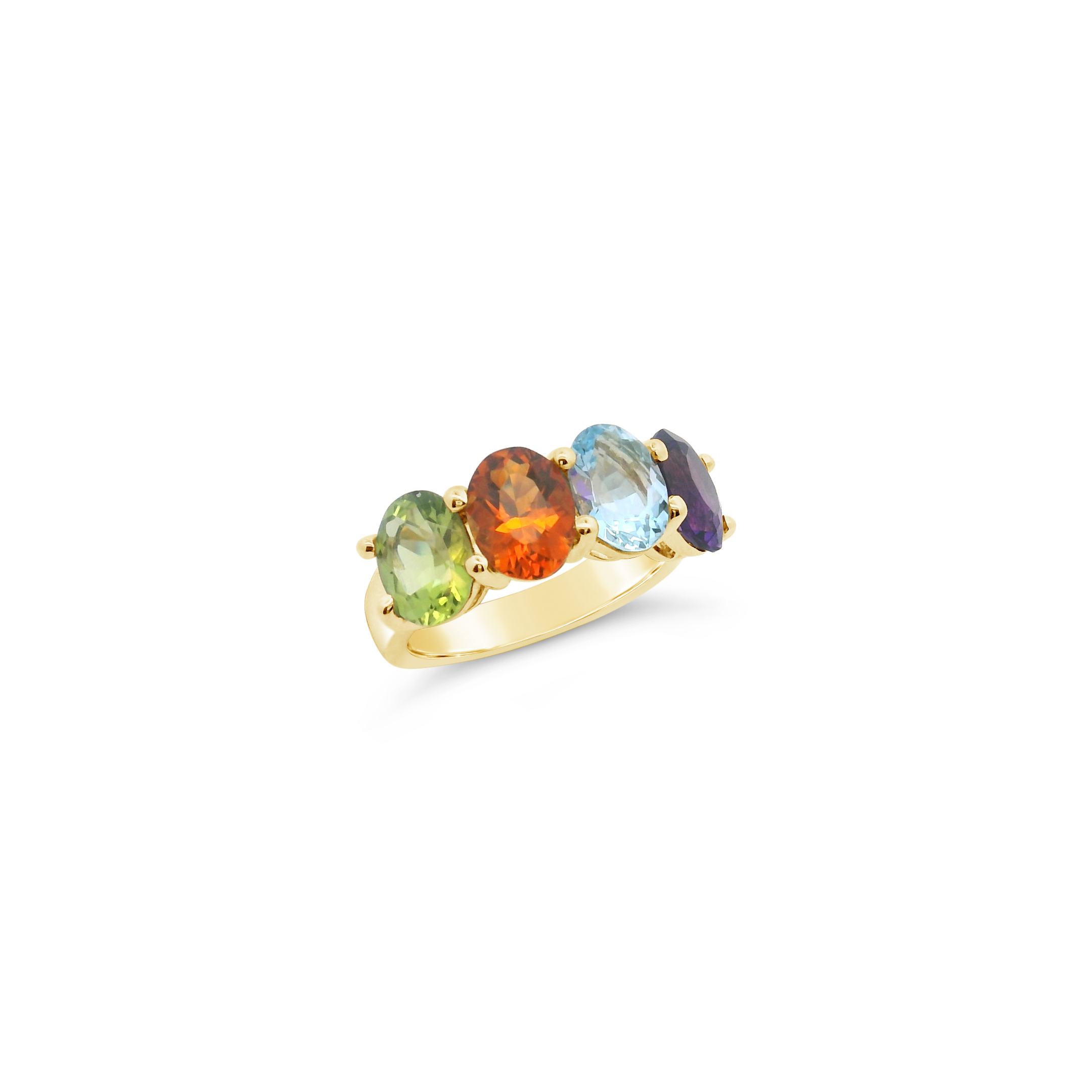 Oval peridot, citrine, amethyst and blue topaz set in 18k yellow gold in this mother's ring.