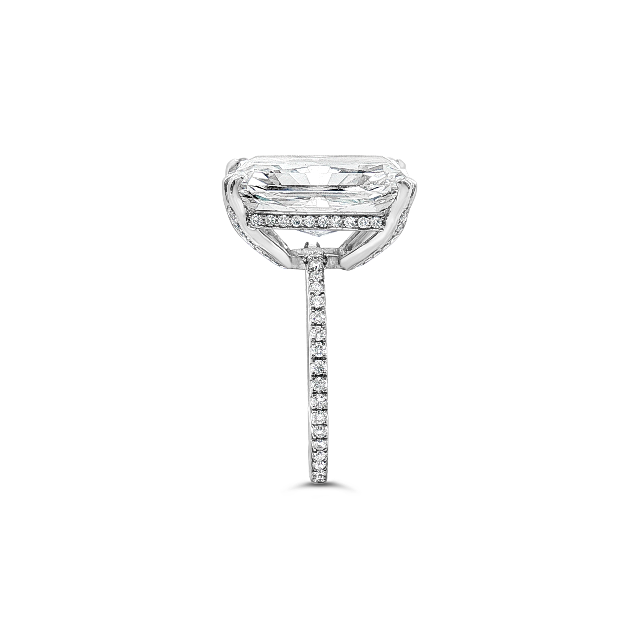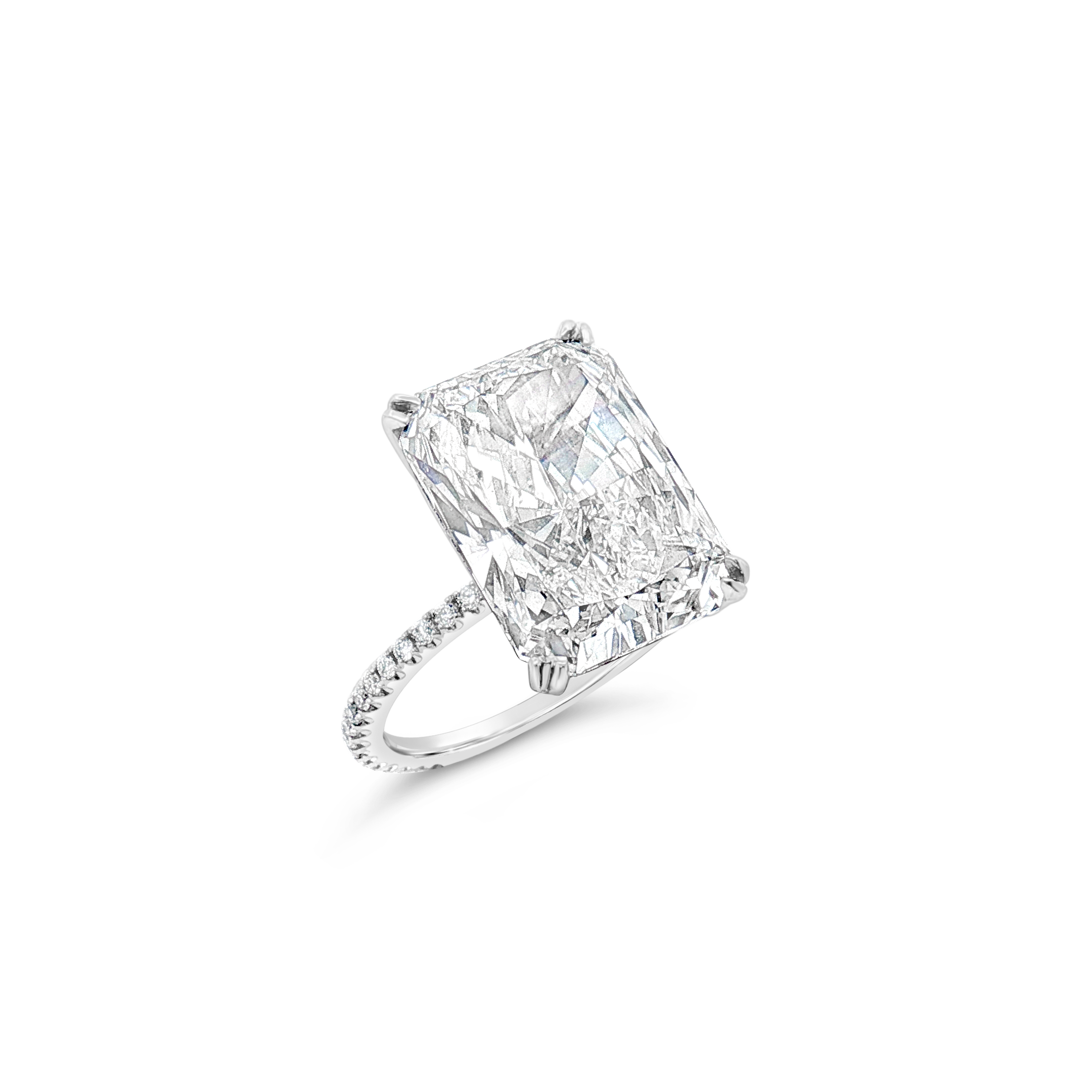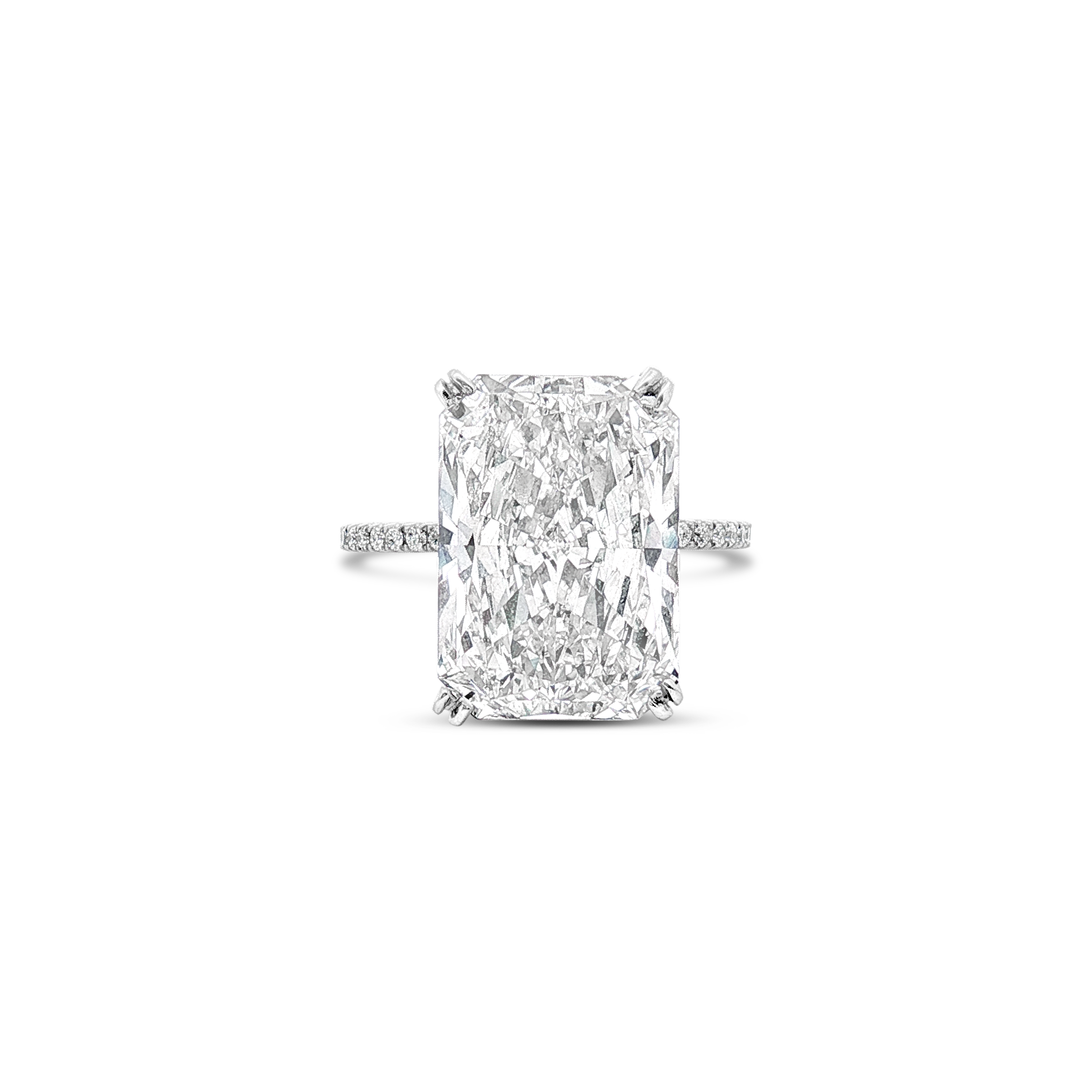 Radiant cut diamond ring with the diamond weight of 9.05 carats.