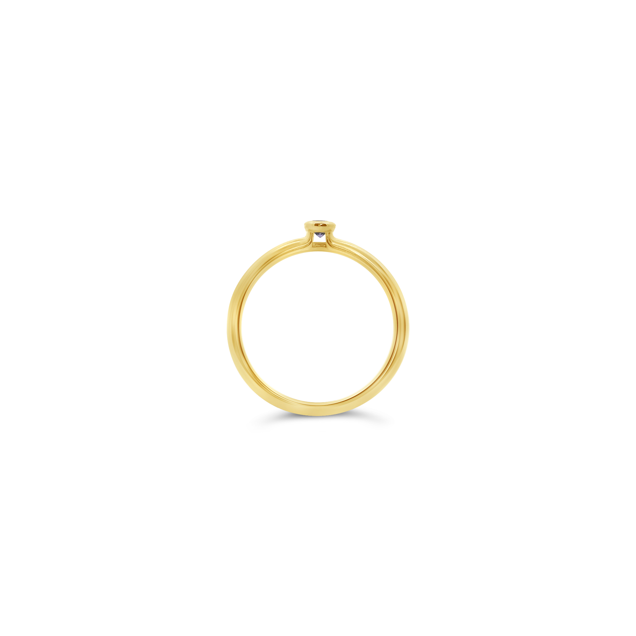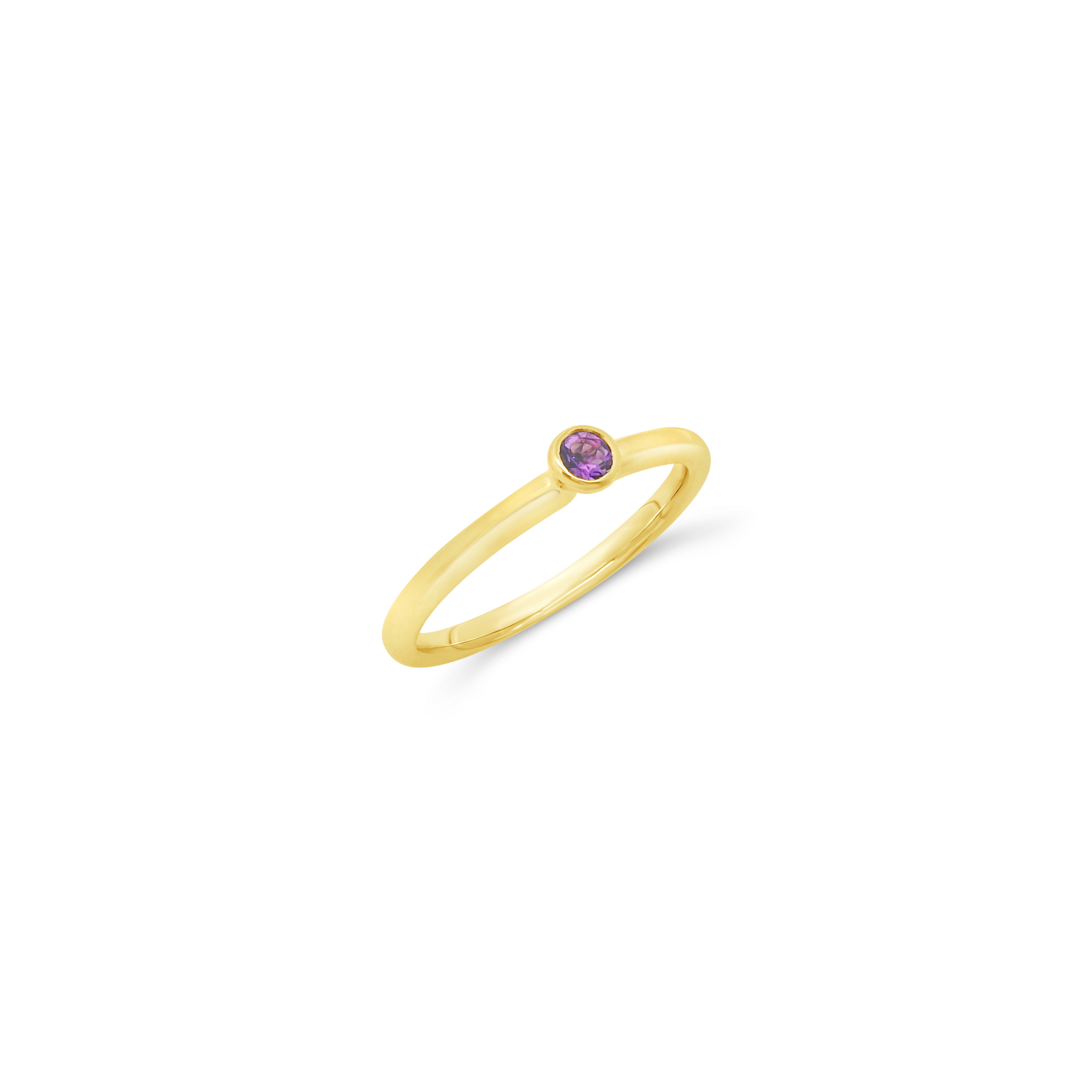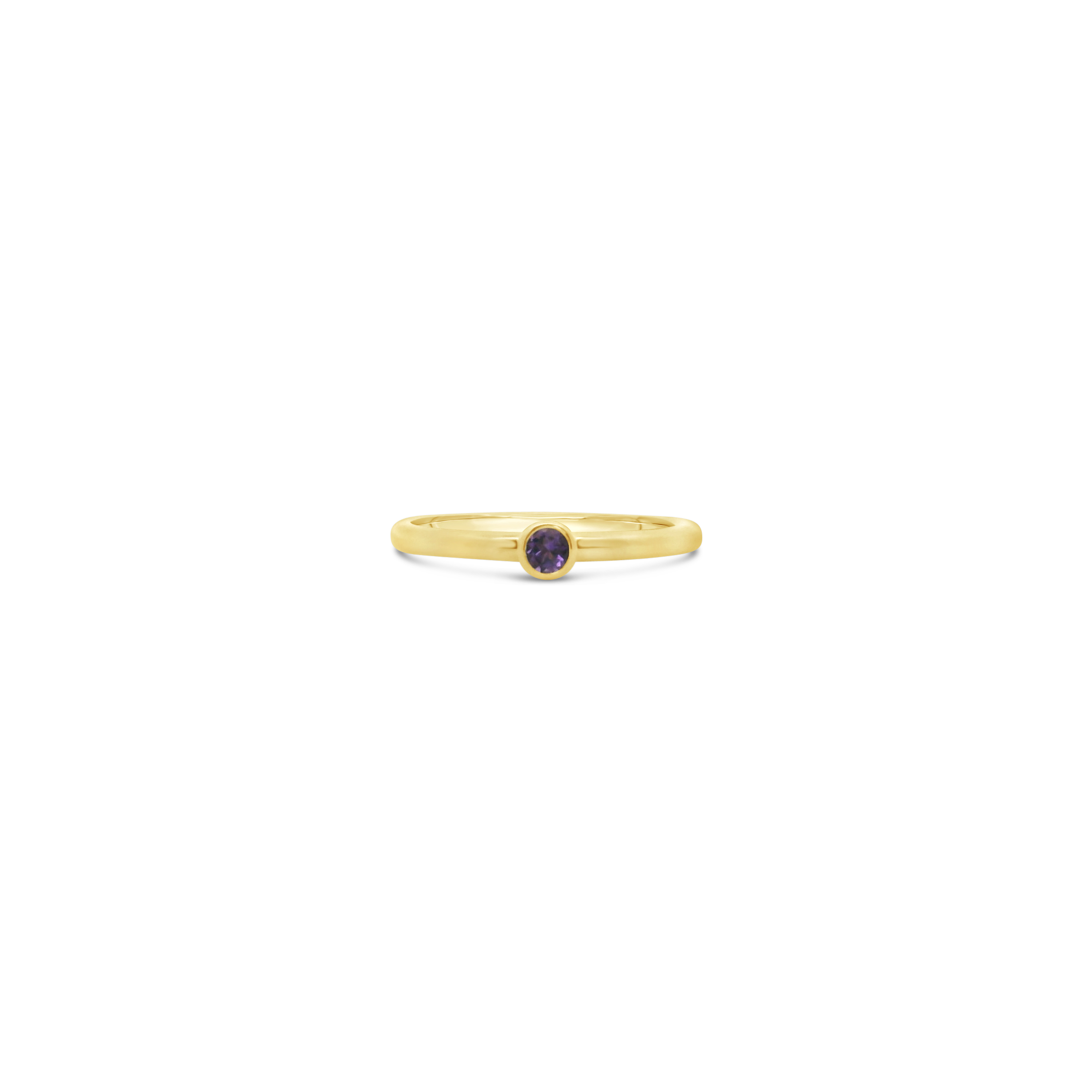 Round amethyst bezel set in 14k yellow gold in this stacker ring.